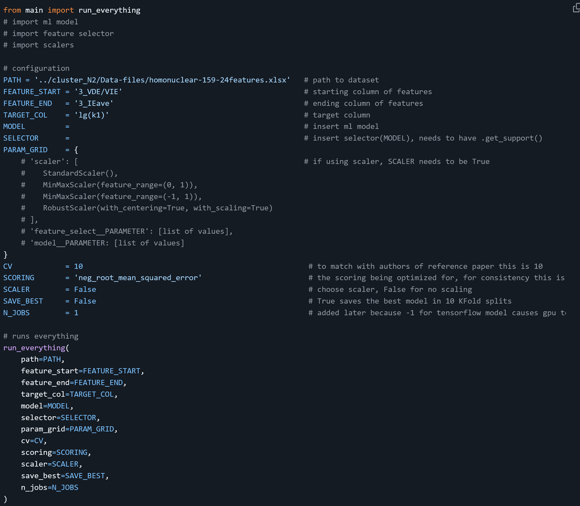 We built a framework (main.py) for model training, where run_everything implements an outer KFold loop to evaluate model generalization: