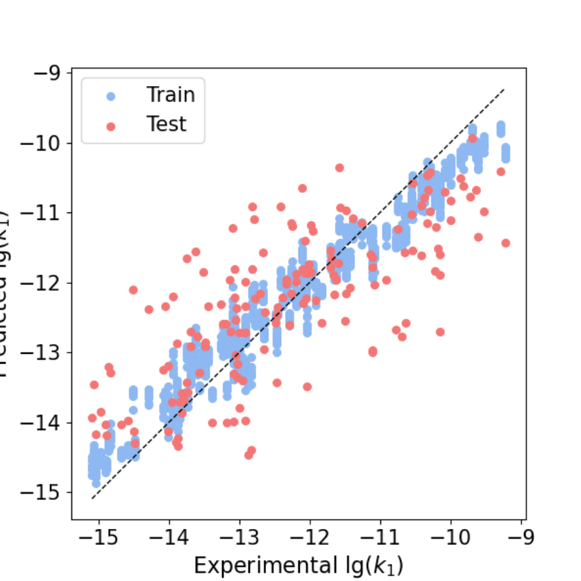 Comparing the model that is our project’s best and the reference’s preliminary models trained without an additional 120 enhanced features, we see that our RMSE and r values for the test datasets are comparable, especially when considering the differences in our feature selection and overall workflow. Our other models, SVR and MLP neural net, did not perform as strongly as RFR, as also demonstrated in this article. We attempted to build a self-compiled neural net to compare to the reference’s final DNN model, yet it would take several days to run which is not within the timeline of the project. However, for future works we certainly note the advantages of using a neural net, as also demonstrated in the article. Their DNN was also trained on a much larger dataset as their pairwise learning strategy expanded to 12,561 cluster pairs, helping to reduce error in reaction rate predictions by better interpreting sensitivity to features after incorporating an additional 105 interaction features. Their feature importance analysis on the DNN also outputs several new and highly important interaction features that were not included in our training data set.